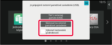 Keď sa zobrazí okno na výber akcie, ťuknite na možnosť [Skenovať na externé pamäťové zariadenie].