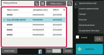Po vybraní priečinka sa v danom priečinku objavia súbory. Vyberte súbor, ktorý chcete vyvolať.