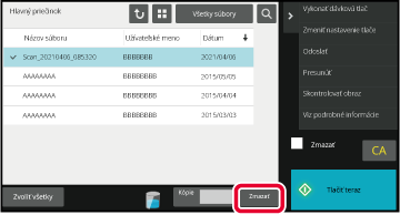 Skontrolujte súbor a potom klepnite na tlačidlo [Zmazať].