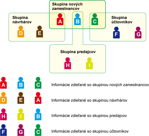 v niektorej organizácii/skupine, aby mohol zdieľať kontakty a informácie
