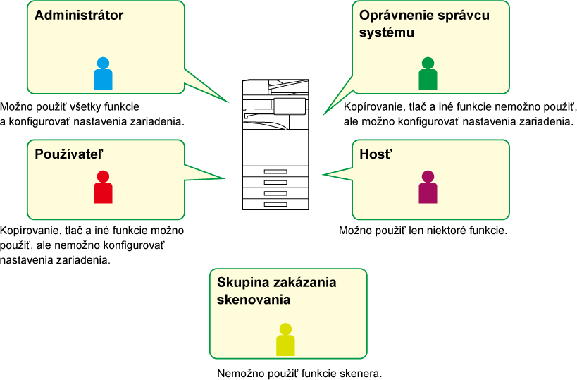 Zariadenie umožňuje vykonávať správu používateľov, napríklad