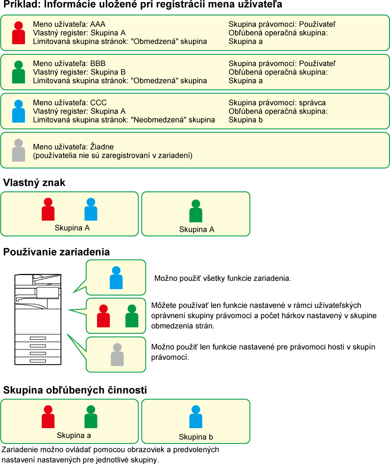 funkcií a nastavení, ktoré môžu používať používatelia patriaci do