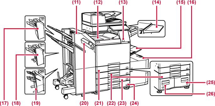 KASSETT 1 - 4 (NÄR ETT STATIV/550/2X550/ 3X550/550 OCH 2100-ARKS PAPPERSMAGASIN ÄR INSTALLERAT)