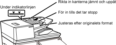 tänds originalindikatorn när dokumentet är rätt placerat i dokumentmatarens