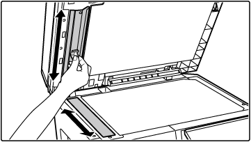Rengör skanningsområdet på dokumentglaset med glasrengöraren.