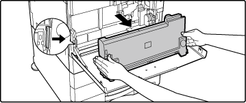 Tryck på båda sidorna av avfallstonerbehållaren med händerna tills spärrarna på vänster och höger sida kopplas in helt..png)