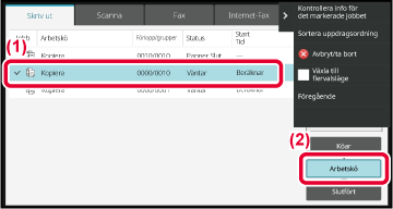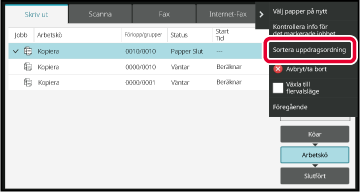 Tryck på det jobb som ska prioriteras och tryck sedan på [Sortera uppdragsordning] på åtgärdspanelen.
