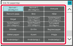 Tryck på [Papperstyp], tryck på knappen för att ställa in papperstyp och tryck sedan på [OK].