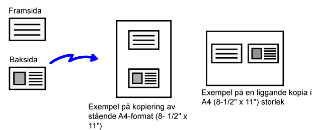 Till exempel kan båda sidorna av ett kort kopieras till ett