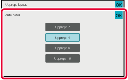 VÄLJA ORIENTERING OCH FORMAT FÖR ORIGINALTryck på [Antal sidor] för att ställa in antal upprepningar.