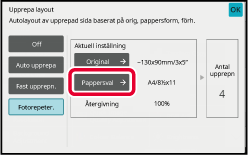 Tryck på knapparna [Original] och [Pappersval] för att välja originalformat respektive pappersformat.
