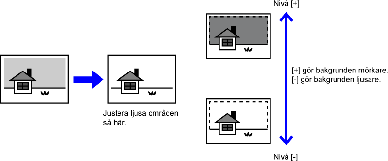 Om du ändrar nivån på [Bakgrundsjustering] till sidan [+]