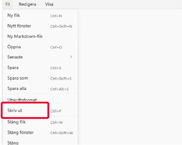 Välj [Skriv ut] på menyn [Arkiv] i Notepad.