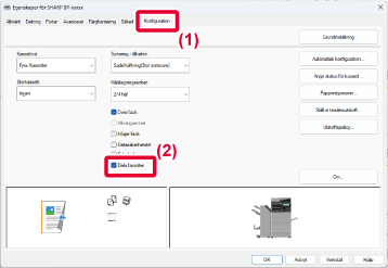 delad skrivare och "Favorit" är inställt i skrivardrivrutinen för