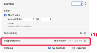 - Välj kuvertstorlek i menyn "Pappersformat".