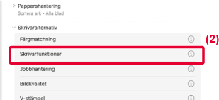 I macOS 12 och tidigare väljer du [Skrivarfunktioner] och