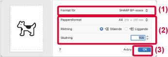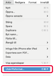 Välj [Utskriftsformat] i menyn [Arkiv] och välj skrivare.