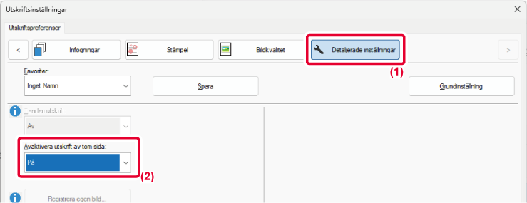 de att hoppas över vid utskrift. Maskinen identifierar tomma sidor