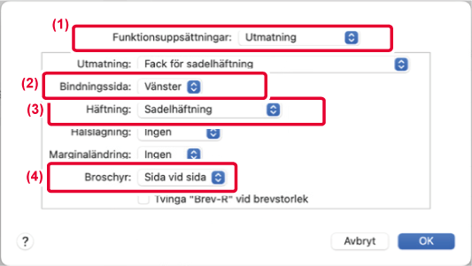 - Välj [Sadelhäftning] från "Häftning".