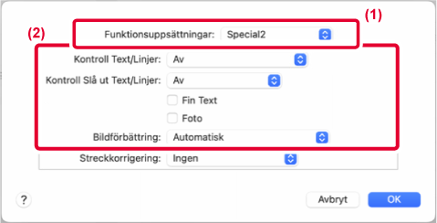 Du kan göra kanterna på text och grafik jämnare eller skarpare. Auto: Utför optimal bildförbättring. Av: Ingen bildförbättring tillämpas. Skarp: Skarp bildförbättring tillämpas. Mjuk: Jämn bildförbättring tillämpas. |
