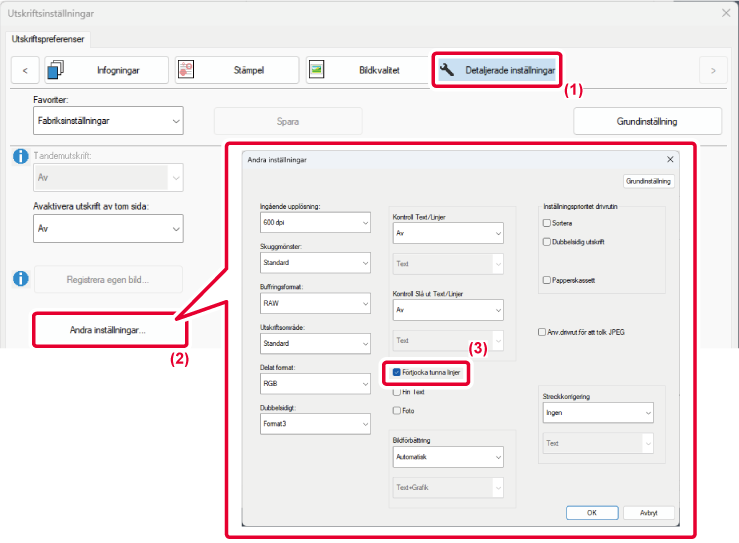 Du kan även skriva ut alla linjer med den minsta linjebredden