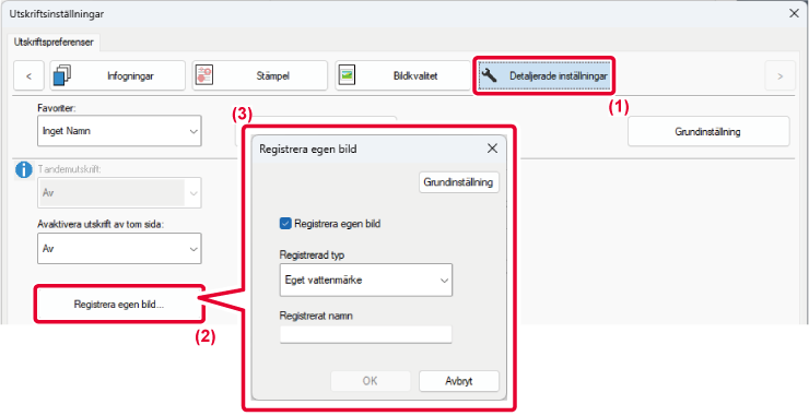 Om [Egen stämpel] har valts i ”Registrerad typ” registreras