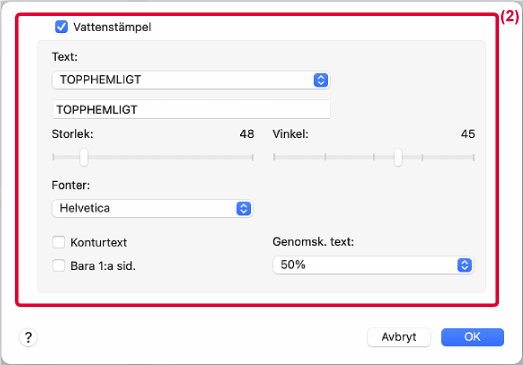 - Markera kryssrutan [Vattenstämpel] och konfigurera inställningarna