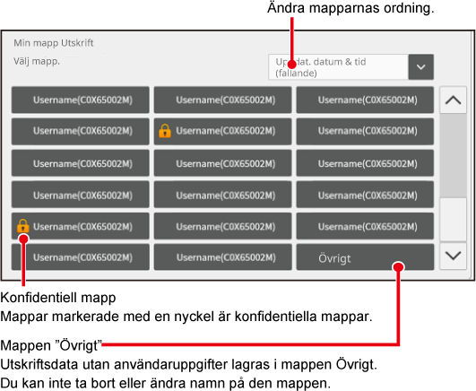 Användare kan skriva ut utskriftsdata från sina mappar på