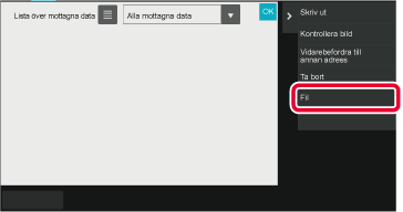 Tryck på knappen för de mottagna data som du vill spara och sedan på [Fil] i åtgärdspanelen.