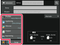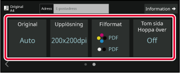 Ange originalets scanningsstorlek, exponering, filformat och andra inställningar.
