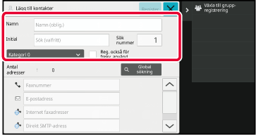 Gå till adressbokskärmen och tryck på [Lägg Till Ny] i åtgärdspanelen eller på ikonen [Adresskontroll] på hemskärmen.