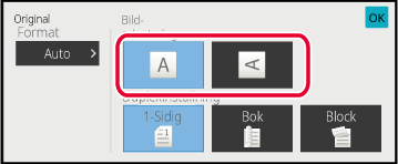 Ange riktningen för originalet som du lade i maskinen i steg 1.