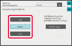 (På BP-51M26/BP-51M31/BP-51M36/BP-51M45/BP-51M55/BP-51M65 krävs OCR-expansionssatsen.) Tryck på någon av knapparna [Komprimeringsläge] eller [Komprimeringsförhållande].