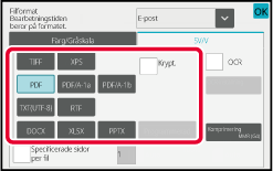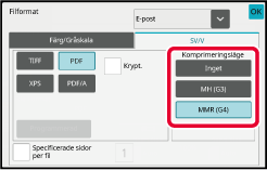 *1 När PDF väljs som filformat (inklusive krypterad och hög komprimering) kan Flate-komprimering användas för att minska filstorleken.