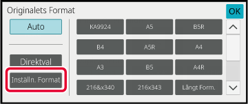 Tryck på knappen [Scan. Storlek] och sedan på fliken [Inställ.format].