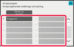 Placera originalet i dokumentinmatningsfacket i den automatiska dokumentmataren eller på dokumentglaset i enlighet med funktionen som sparats i programmet.Tryck på knappen för önskat program.