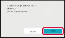 En ljudsignal talar om att scanningen har utförts.När scanningen är klar kontrollerar du hur många originalark som scannades och hur många ark som ska skickas och trycker sedan på knappen [OK] för att starta överföringen.