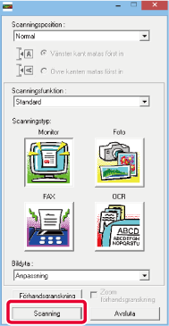 och börjar scanna varierar beroende på det TWAIN-kompatibla programmet.