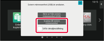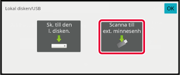 Tryck på [Scanna till extern minnesenhet] när skärmen där du kan välja en åtgärd visas.