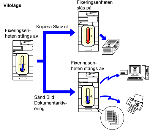 och fixeringsenheten av så att maskinen drar så lite ström som möjligt i
