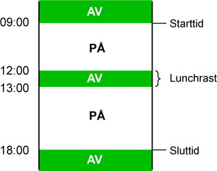Ställ in tidsperioder för maskinlägen. Välj ett av lägena 1 till 4 och välj en veckodag, starttid och sluttid. |
