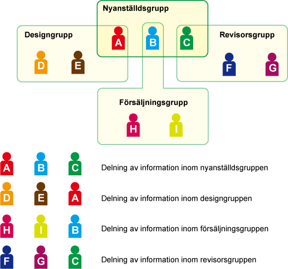 i en organisation/grupp för att dela kontakter och gruppinformation