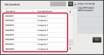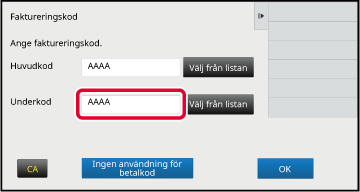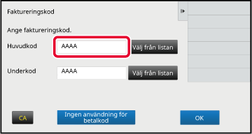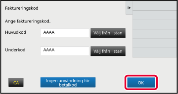 för att slutföra registreringsproceduren.Tryck på knappen [Välj från listan] för huvudkoden när inmatningsfönstret för faktureringskoder visas.