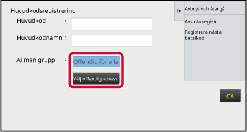 Offentlig för alla: Registrerar faktureringskoden som en offentlig kod för alla som använder maskinen.