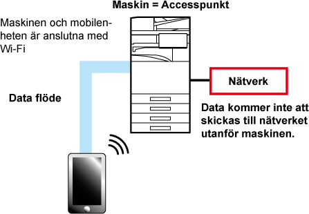 Maskinen kan ställas in som en åtkomstpunkt och kommunicera