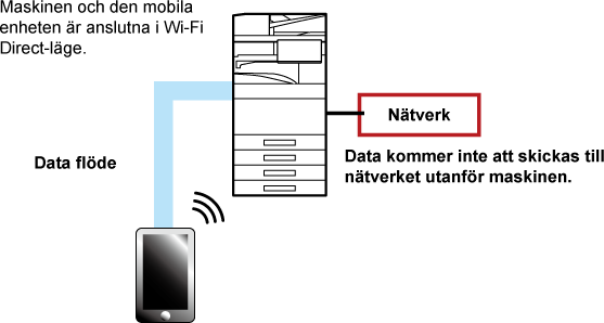 via Wi-Fi. I det här läget är kommunikationen med det nätverk som