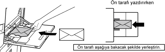 yazdırılacak tarafı aşağı bakacak şekilde baypas tablasına yerleştirin.