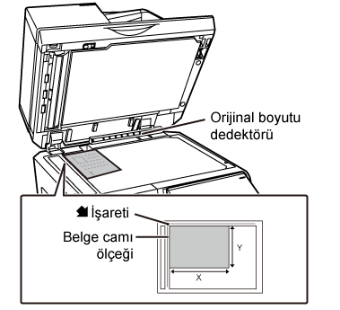 Orijinal boyut dedektörünün altına herhangi bir nesne koymayın.Otomatik belge besleyiciyi kapatın.