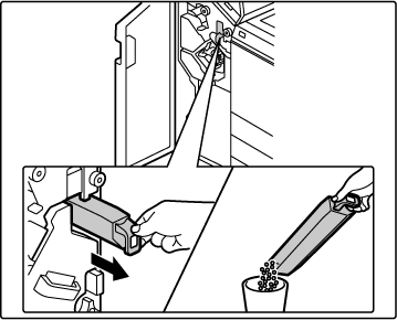 Delgi atık kutusu kolunu tutun, kutuyu yavaşça dışarı çekin ve delgi atıklarını atın.