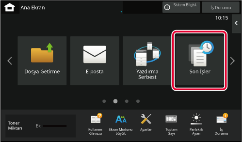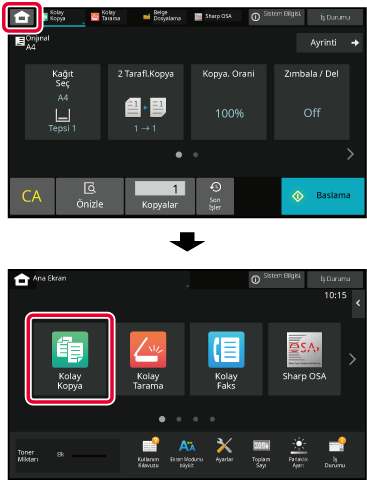 [Ana Ekran] tuşuna dokunulması, dokunmatik panelde